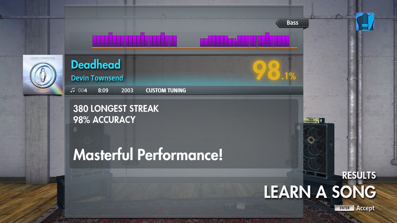 This might be it for this one for me. Still not a fan of downtuning this far. My bass actually handles it well, I just do not love the loose strings and semi-random misses. A lot of the misses are from my sloppy mechanics I am sure.