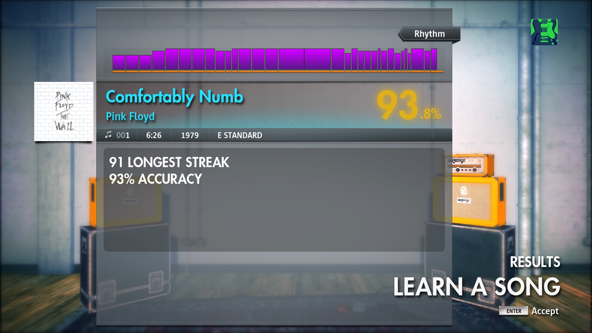 Great week with one of my favourite songs. I was a bit surprised to see Comfortably numb with one of Mr Guilmore's best solos in the Intermediate group - but I pulled it off at a decent percentage....