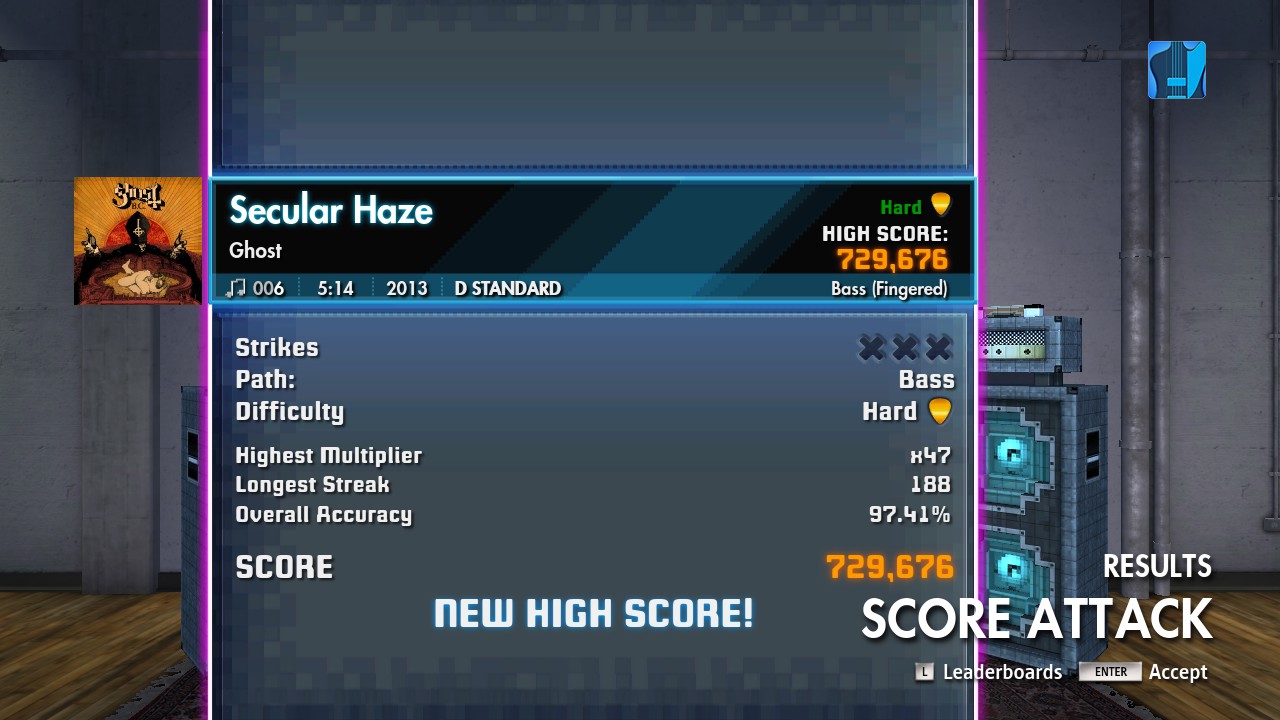 So i was in D Standard when i played Secular Haze, so what i did, was playing Meliora on it's entirety, when i listened it for the first time in August it blew my mind, is one of the best albums of the year, with The Book of Souls from Maiden :D (I only played 9 songs of 10 from the album, but i don't know why RS counted the songs i skipped to finish)