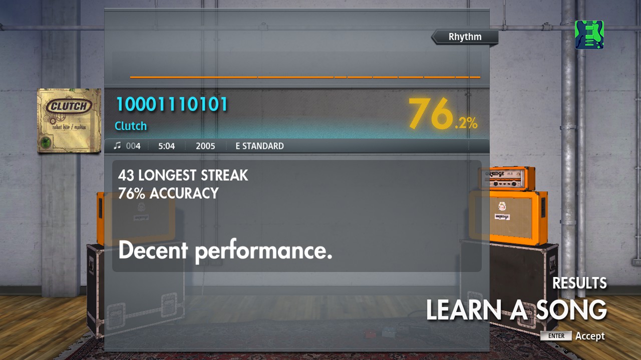 I grinded out a couple of the solo sections in RR after this and only scored worse. :( I hit them fairly accurately when they're isolated, but when they're all rapid fire after six minutes of riffing I drop dozens of notes at a time.