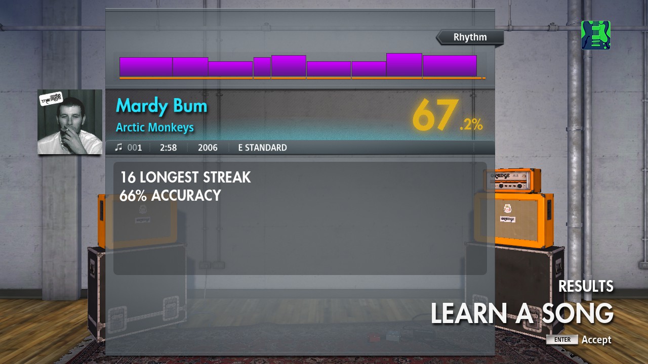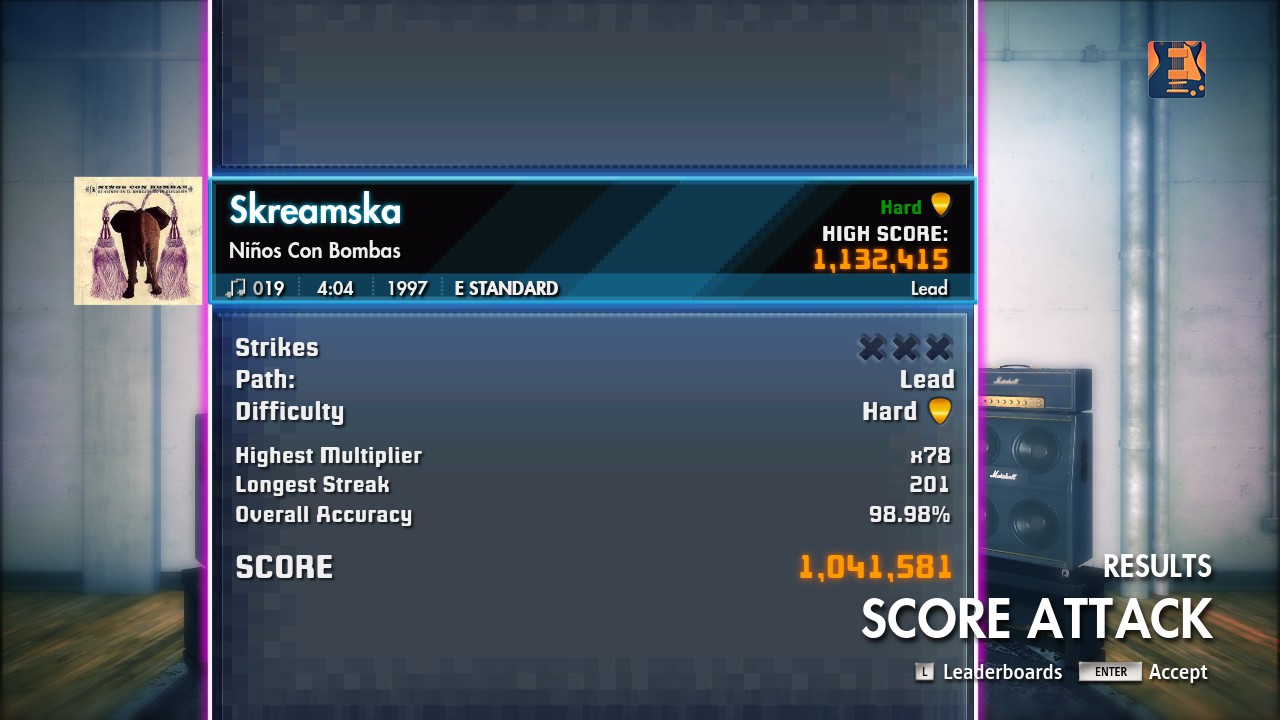 Tried a bunch to 100% Skreamska with no luck. I've got the tricky chords down, but I keep getting close to the end and then messing up something easy. :(