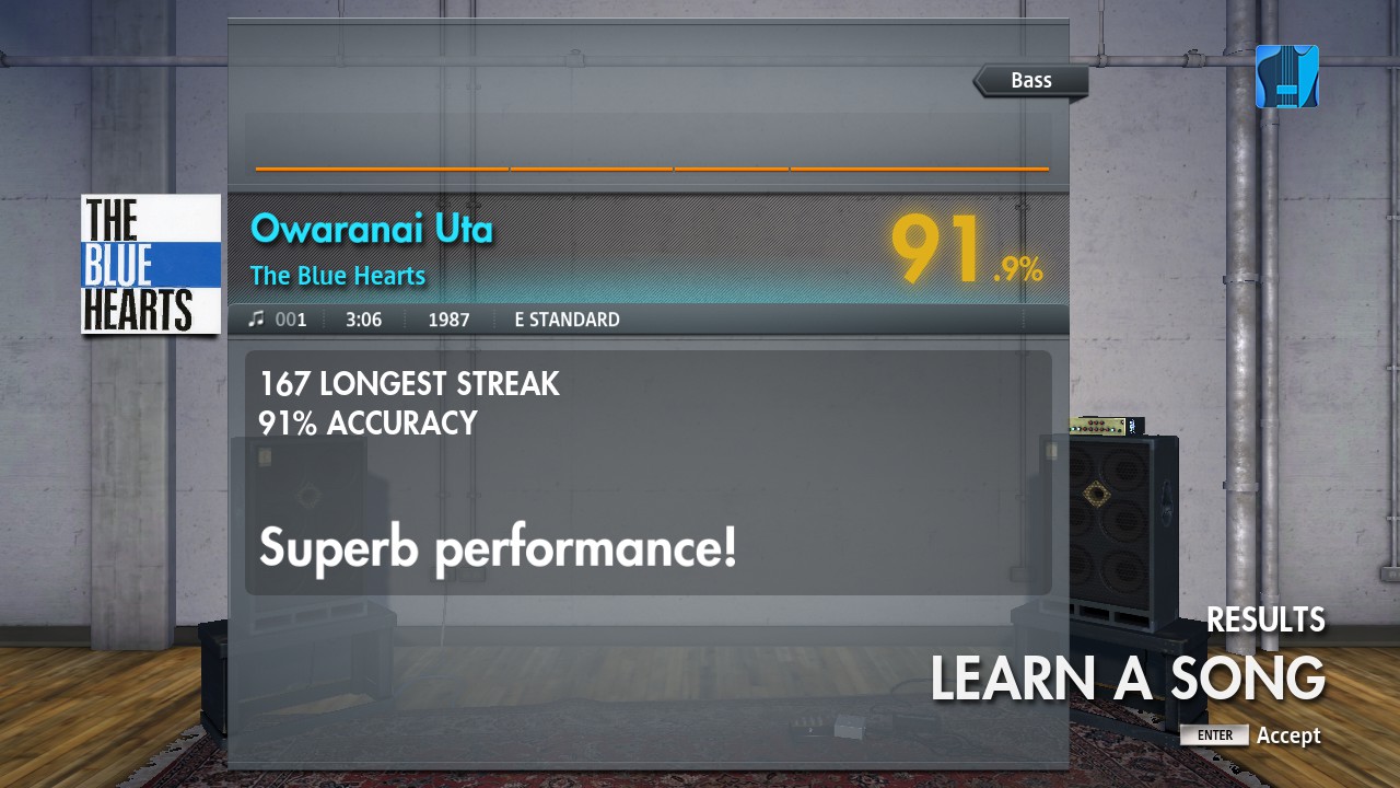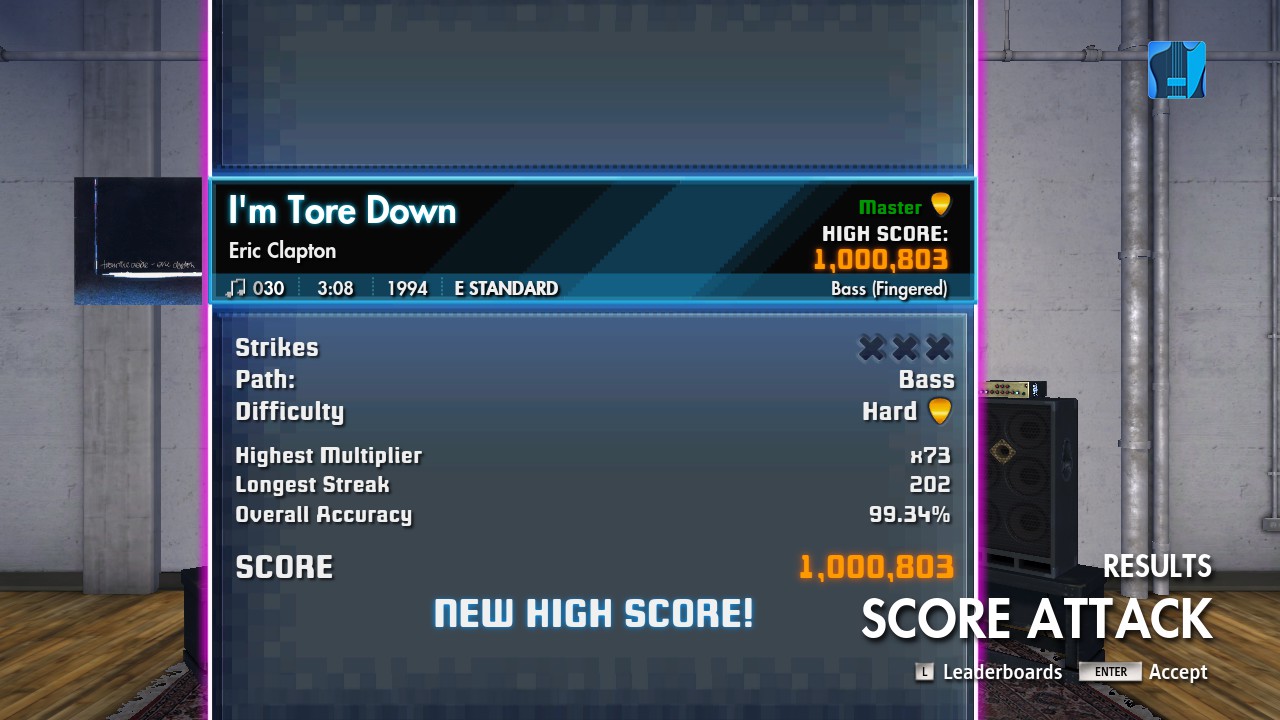 Firstly, it was me that scored 1 382 771, on The Blue Hearts, not @@Psymanski, and yes, I am being that competitive (it comes with almost being able to play bass after 2.5 years…) plus I don't want to have to attempt another 100%, but Psymanski will now probably beat me into the ground score-wise :D.