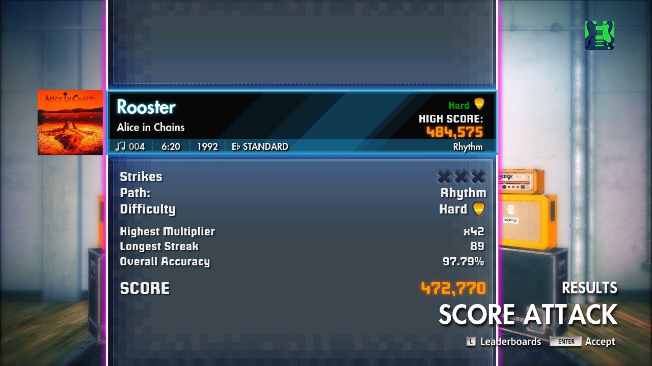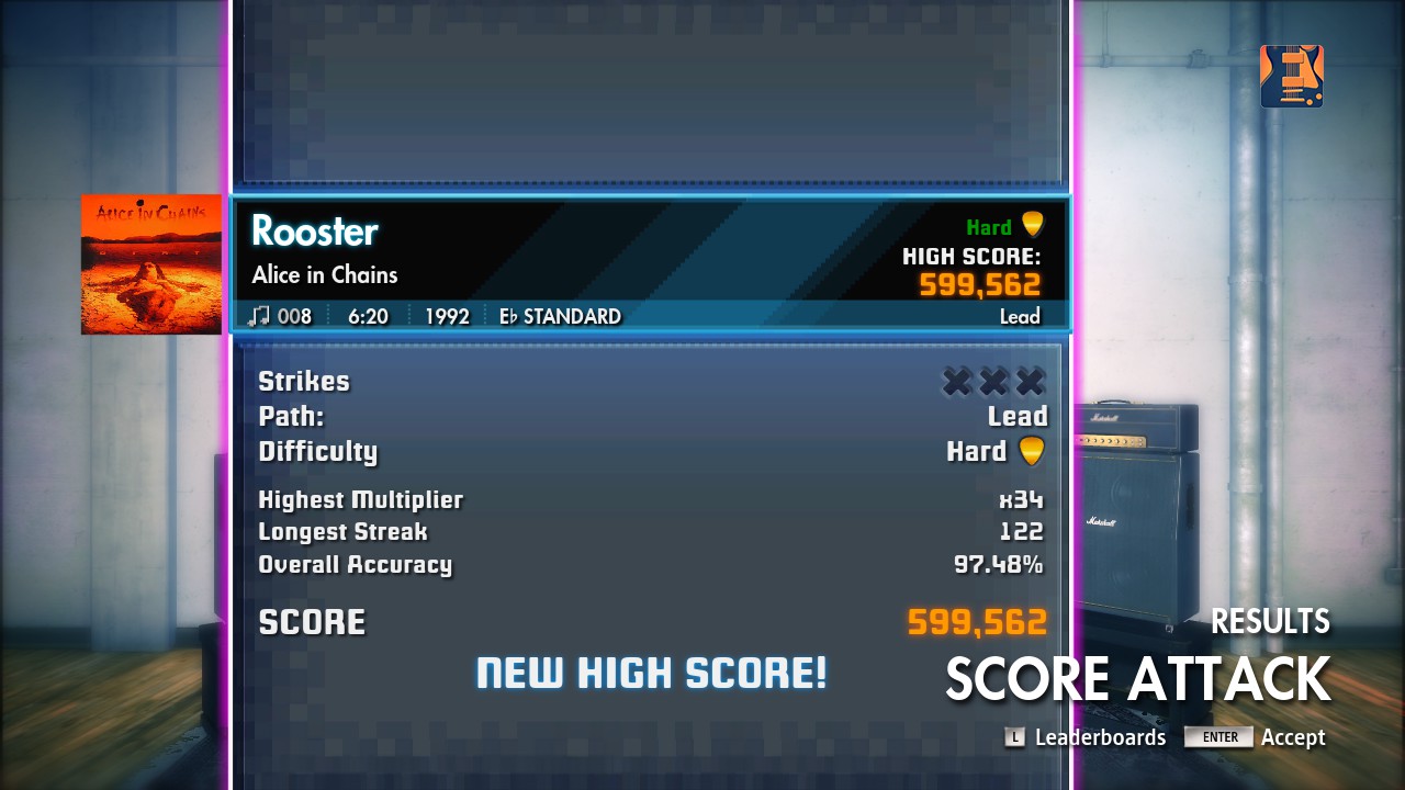 Rooster:   http://steamcommunity.com/sharedfiles/filedetails/?id=790168493   Rocked out to that so quite a lot of misses cos I wasn't paying attention :) Love this track A LOT!   What's Up:   http://s