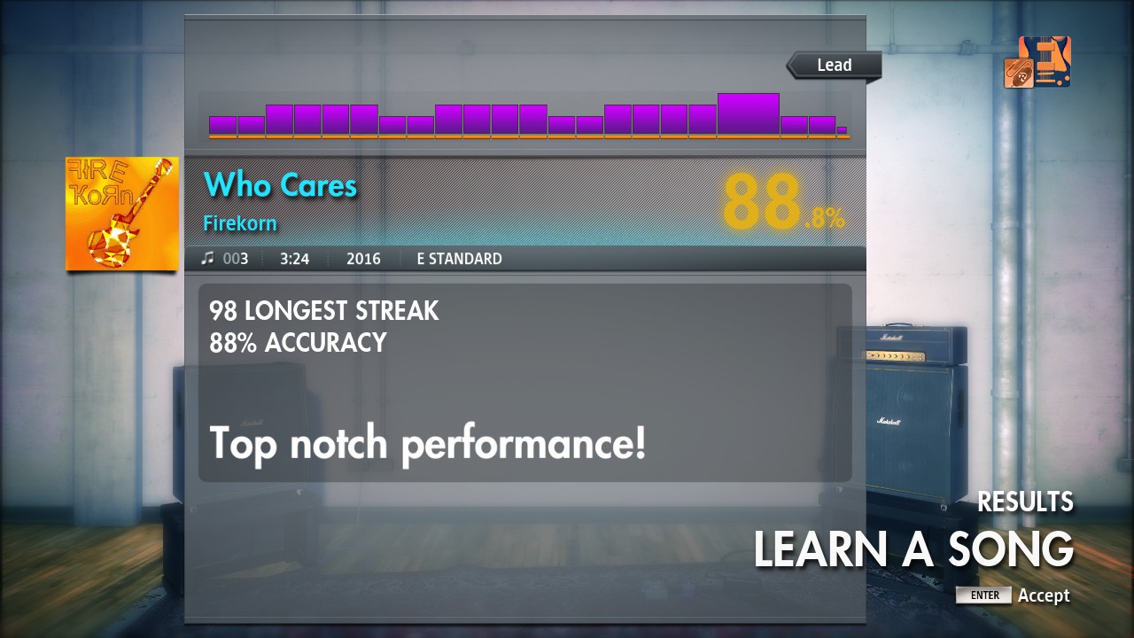 This song is surprisingly not as hard as I thought it'd be (most of the time). There are some pretty quick melodies that will take some learning, but a lot of these riffs I could just do off the bat.
