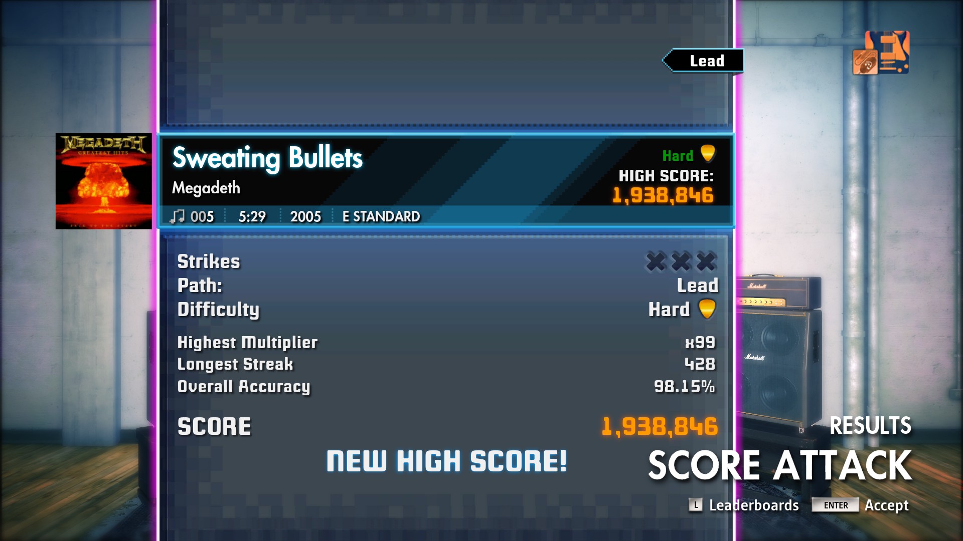 Love the Opeth song. I had never heard it before. Spent some time working on Megadeath. Not my favorite song by them, but damn, it's fun to play.       Can I voluntarily move up to Masterclass? It's