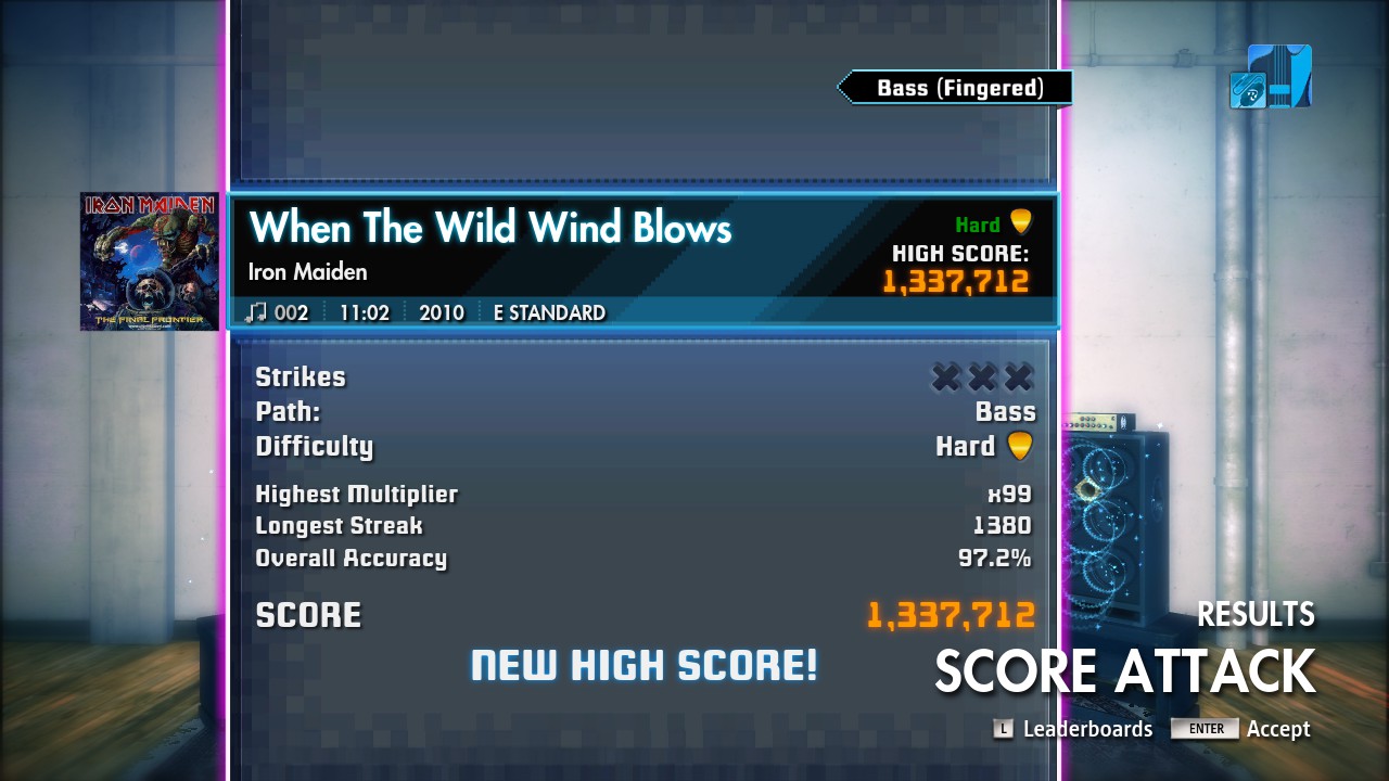 more is not possible with my setup, the E string is giving me random misses, so are the slides in Red Baron, Fields of Verdun and the Ending Track.