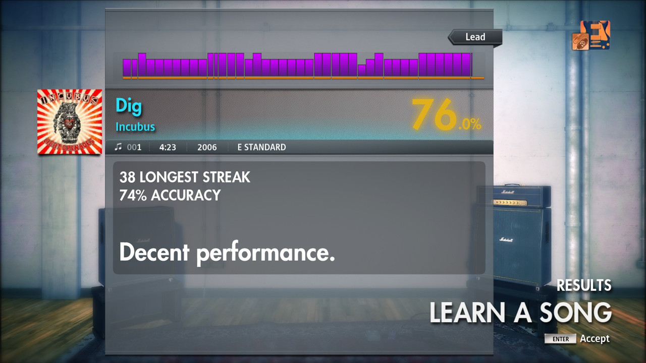 More importantly, @ Rodman  and I believe @ ShankD  you have played the wrong version of "Dig" on bass. Both versions use the same album art and are the same length but the one linked in the OP under the "bass" section (not lead or rhythm) is more challenging and has more notes. I confirmed this when @ Rodman  recorded his 100% with 588 notes - the correct version has 665 notes and I doubt anyone will be recording a 100% on it. It's easy to differentiate the two versions as the correct one is bass only.