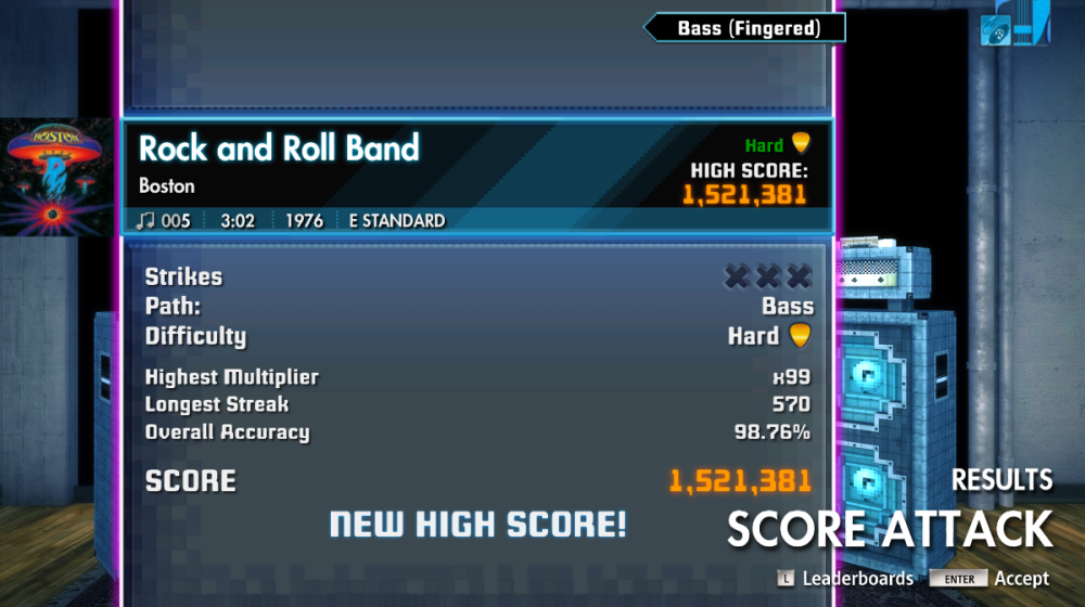 I tested both versions of Rock and Roll Band for bass and while they are both acceptable, I do think the older chart is more complete. The tone volume is too low but that's fixable. I actually scored a 98 % on that one when I tested it but forgot to screenshot it. Oh well.