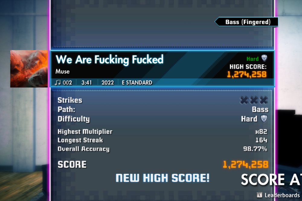 nice 99.36%! i'm having technical difficulties with the rocksmith detection so looks like its all yours! 😄