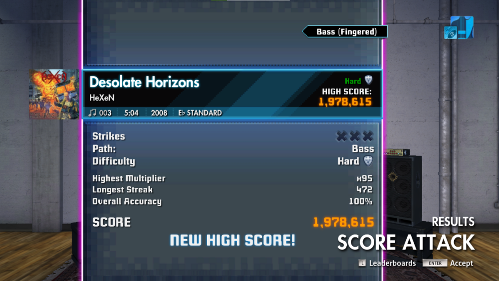 Got a huge week lined up, so I think I'll treat this either as my last or second last crack at SoP on bass (GoB). 94%, so a percentage increased. Pretty happy with the result given i've been using fingerstyle only on bass songs and didn't get many chances to play.