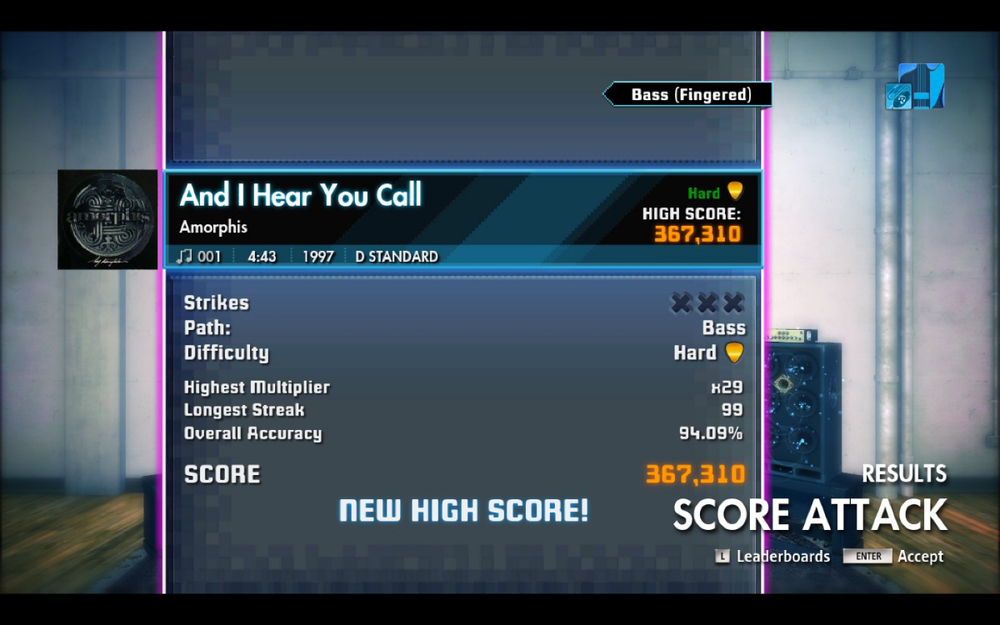 I liked the earlier Amorphis songs we played here better, but there's a nice chart here. Unfortunately, I have very bad chord recognition (which is not difficult), which spoils the final score a lot...