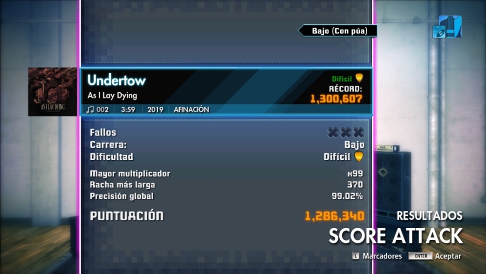 Not sure what my problem is on this one it's either I'm not hitting the notes cleanly or my timing is off but Rocksmith is being very fussy on this song.