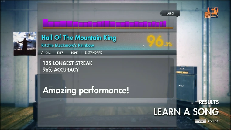 Thought I would include my 2 best results for this one. One of those bittersweet situations where I got a higher percentage on the attempt that I also got a strike on. This is another great Blackmore song with tons of fun riffs dotted about, the end section where the tempo gradually increased is a real workout and I know I'll come back to this more and more purely as an endurance exercise.