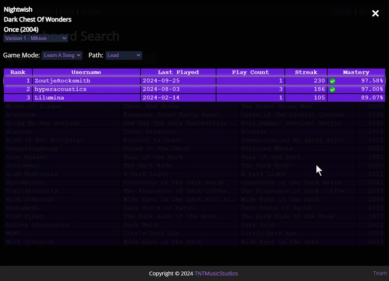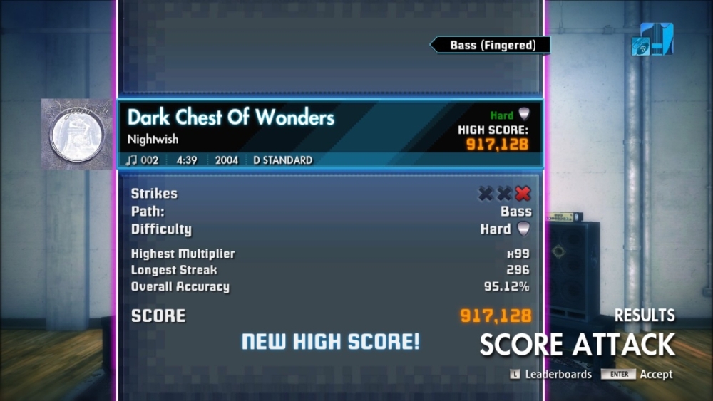 Symphonic is probably my favourite subgenre of metal and this is the song, and album, that got me into it. Pretty fitting choice seeing as a new Nightwish album was just released (still not sure what I think of it!) but I played the hell out of this song this week. Tried as best as I could to break that 99% but this was the closest I could get, the powerchord riffing in the second section always caught me out, bit hectic in there!
