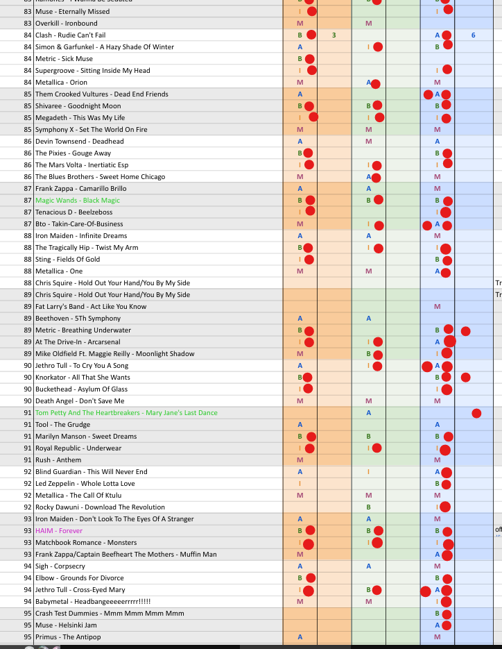 4. Play all bands in collection with over 10 songs and rate by difficulty