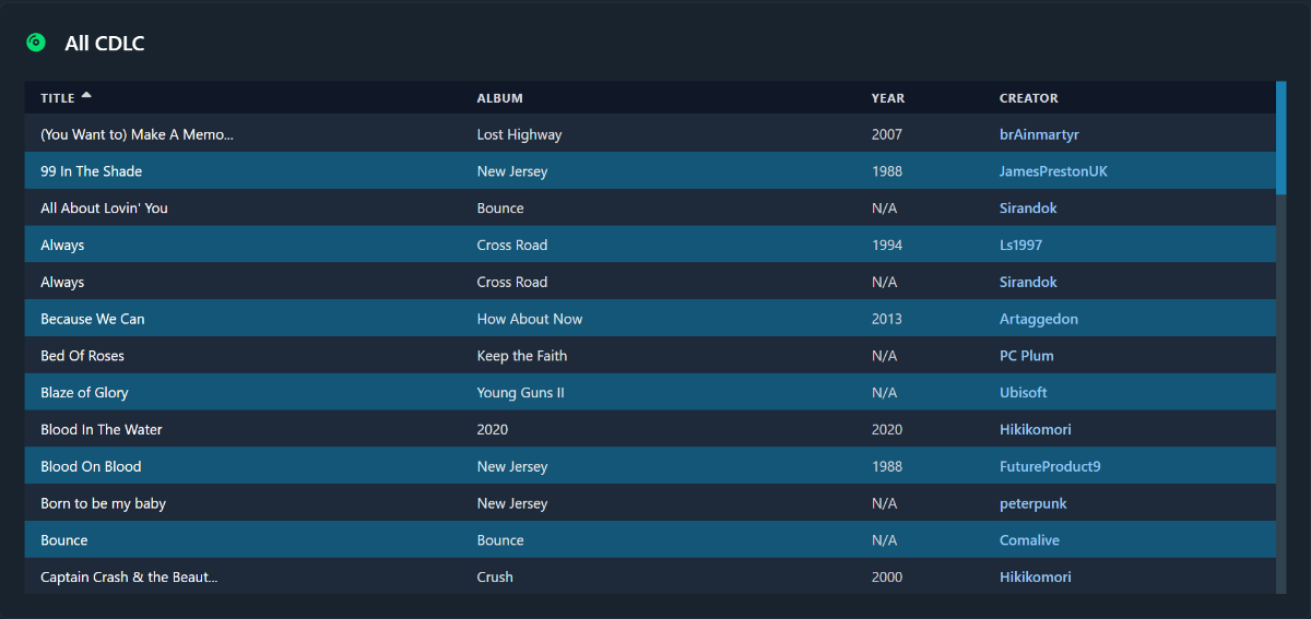 Where it shows the CDLC song lists? If I hover on a song it just shows the name of the song. Hmmm.